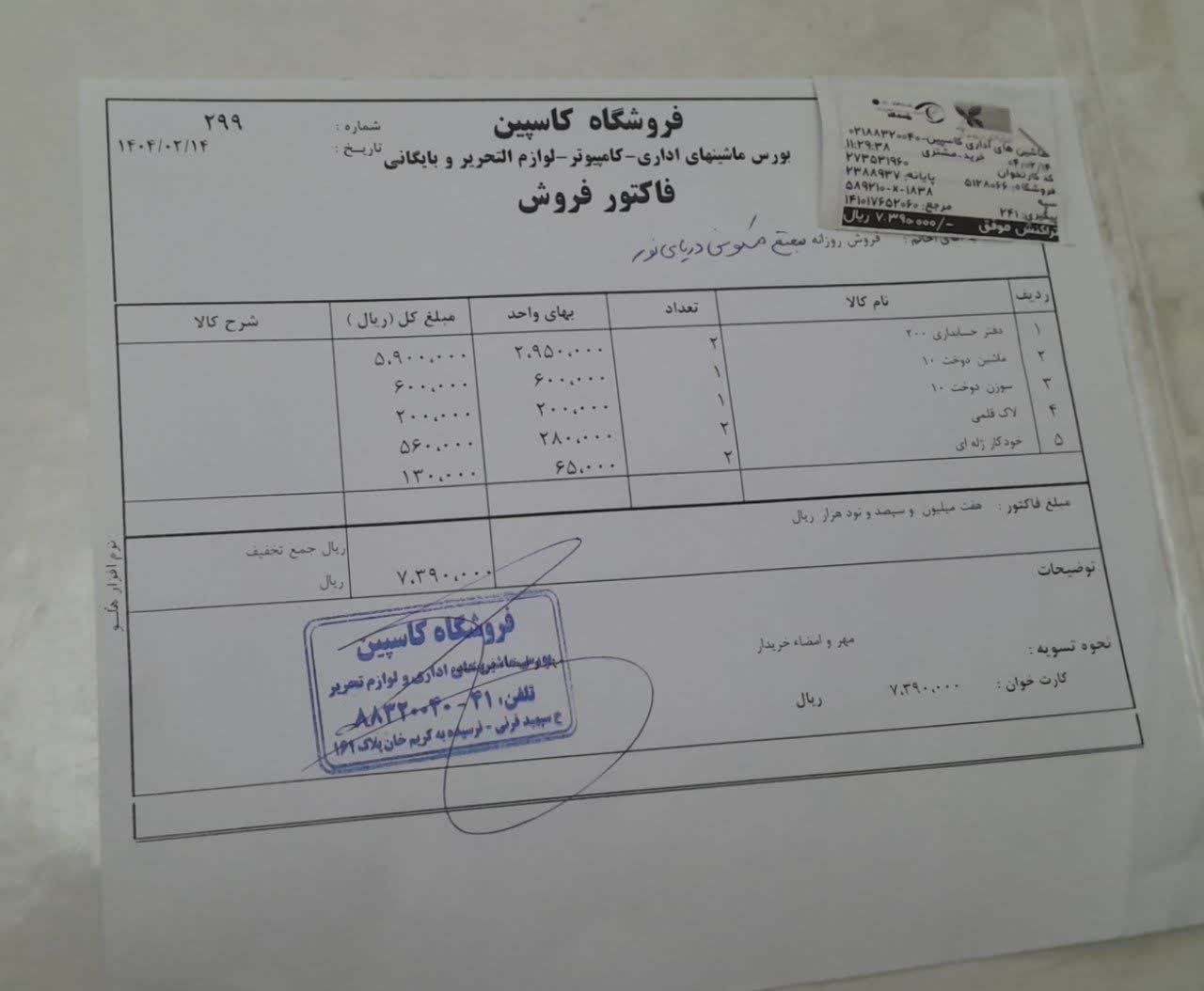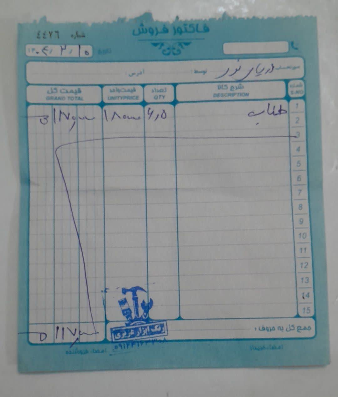 فاکتور خرید لوازم التحریر برای نگهبانی
