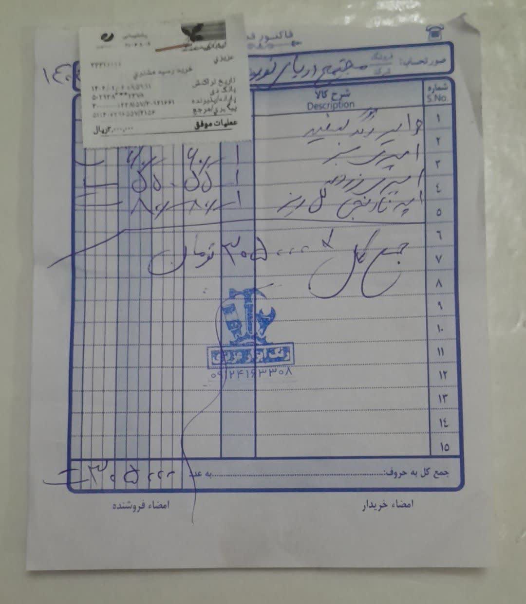 فاکتور باتری برای چراغ قوه نگهبانی مجتمع دریای نور (7 اردیبهشت 1404)